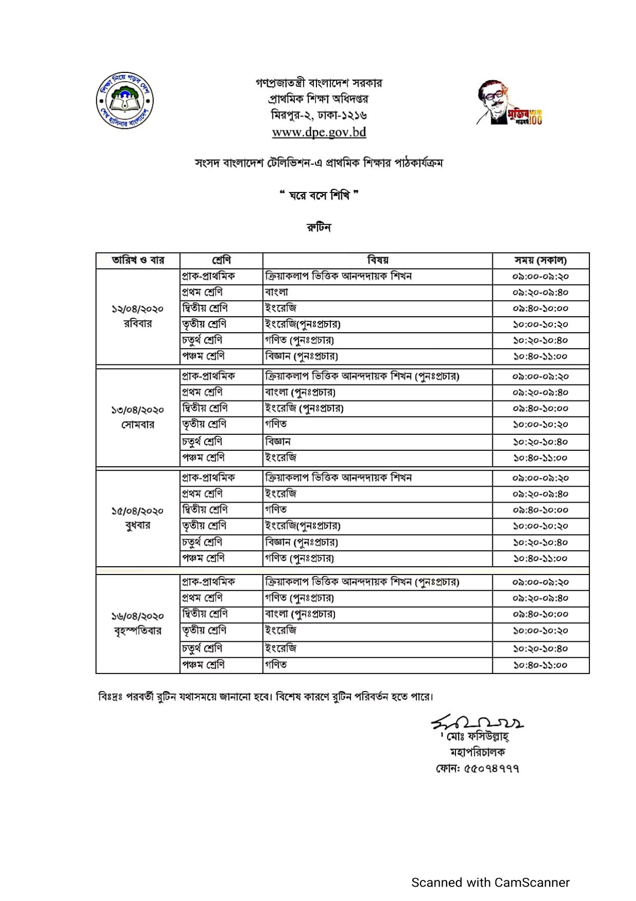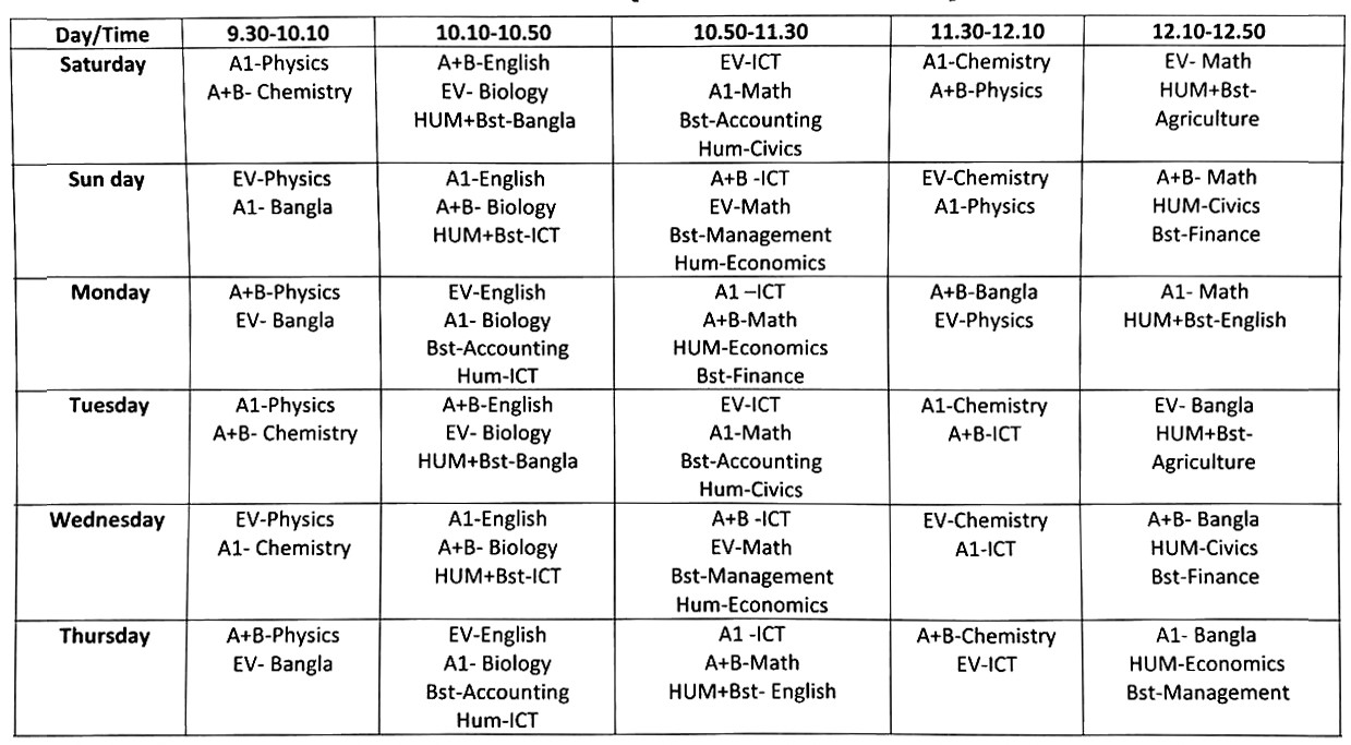 - অনলাইন ক্লাস রুটিন